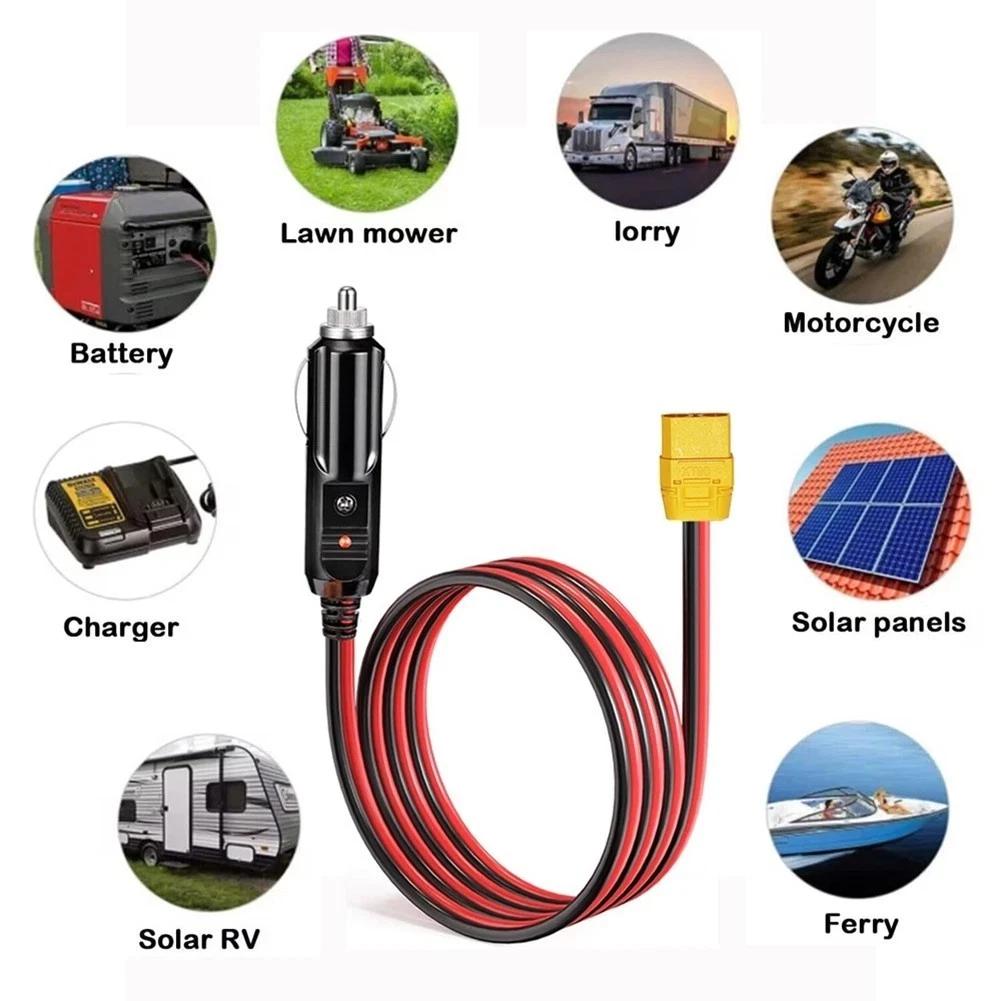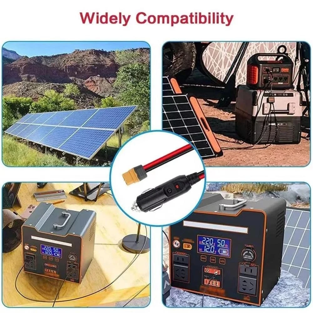 - 1.One end is cigarette lighter suitable for cars 12V output and trucks 24V output, the other end is XT60 connector supports for charging XT90 input solar generator or power station.