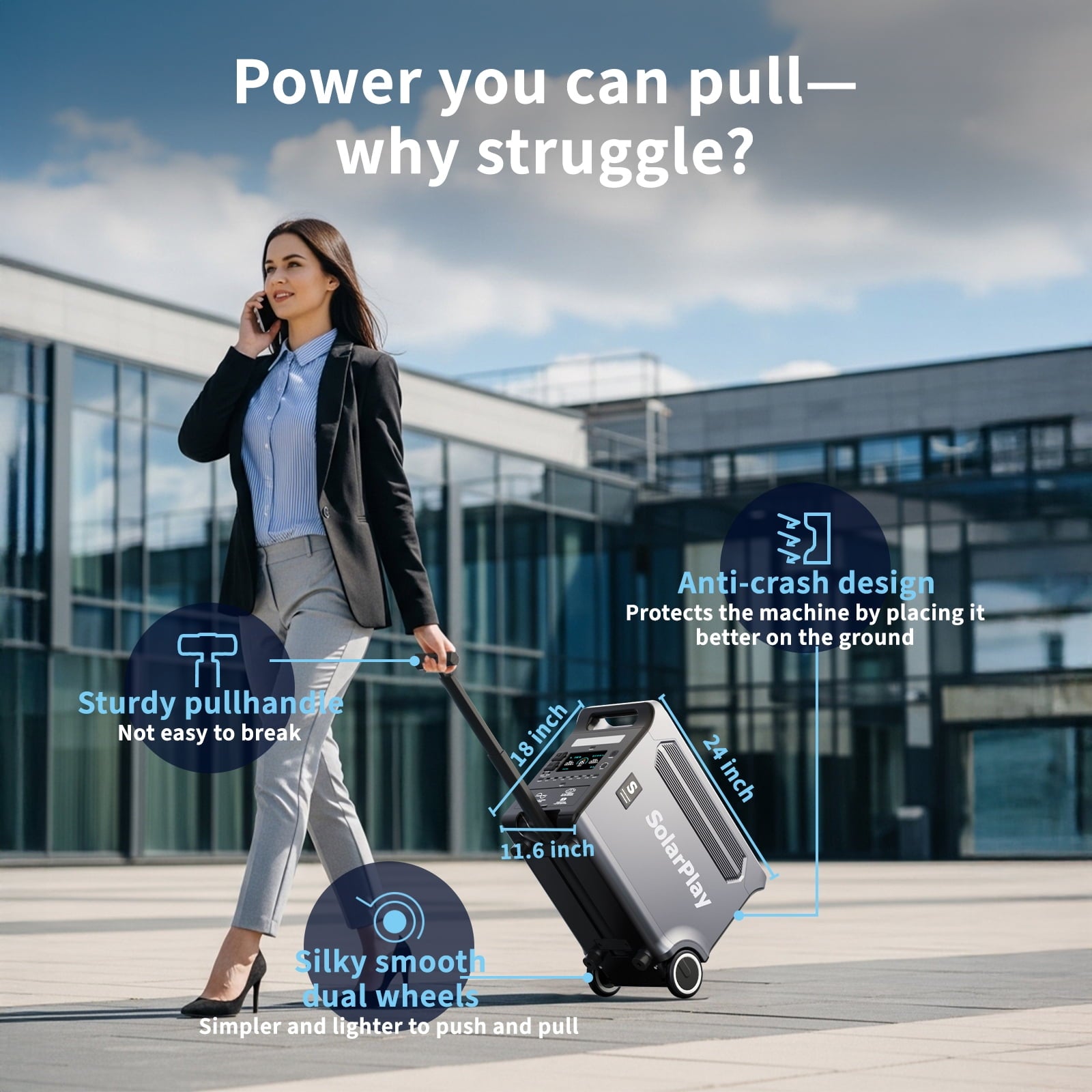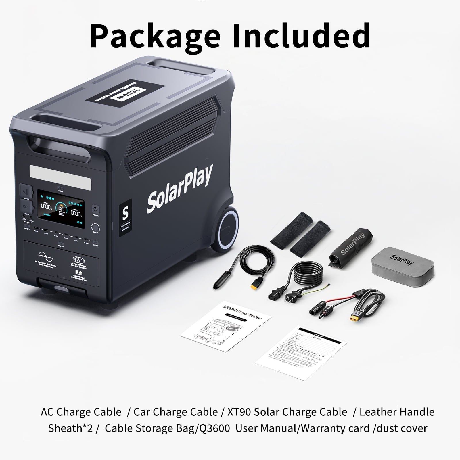 Solarplay 3600W Portable Solar Power Station with 3PCS 400W Solar Panels, 3840Wh LiFePO4 Battery, Peak 6600W, 15 Ports, UPS Backup, Outdoor Camping & Emergency Power Kit