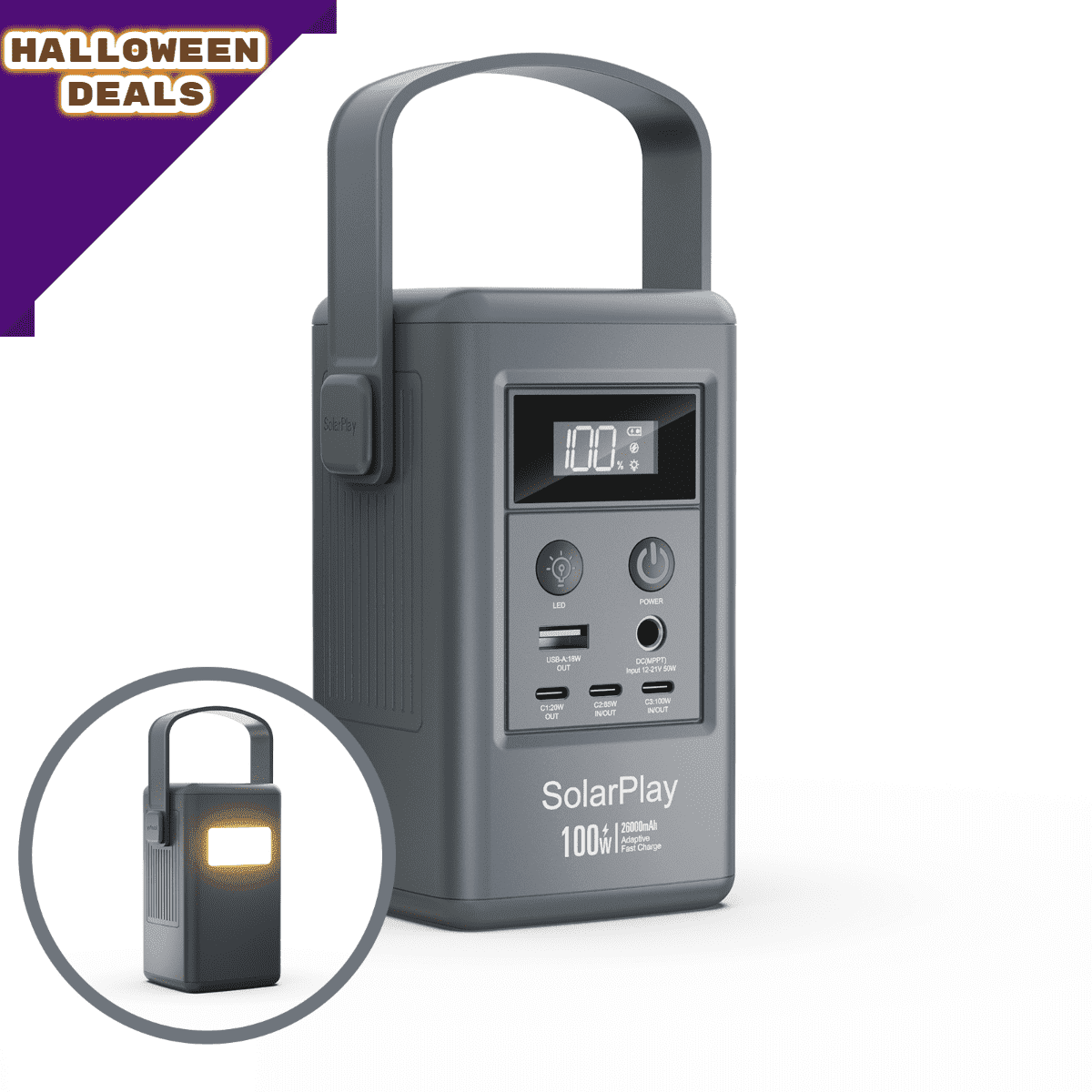 SolarPlay Portable Power Station PD In/Out 100W, (26000mAh/96Wh) LiFePO4 Powerbank Solar Generator for Camping,Hiking,and Emergency