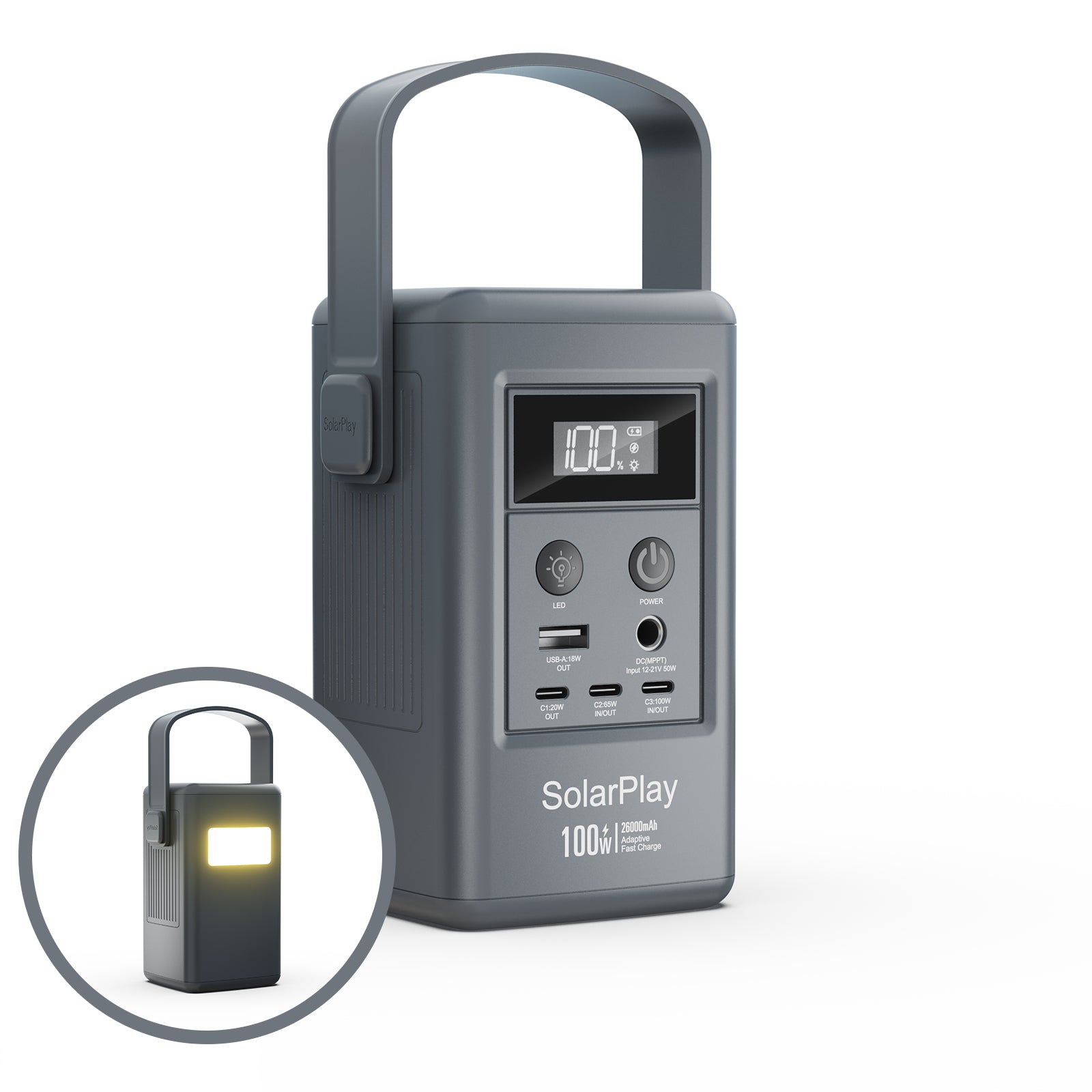 SolarPlay Q100 Portable Power Station with 96Wh LiFePO4 Battery, 100W Solar Generator Two-Way Fast Charging, for Outdoor Camping & Emergencies
